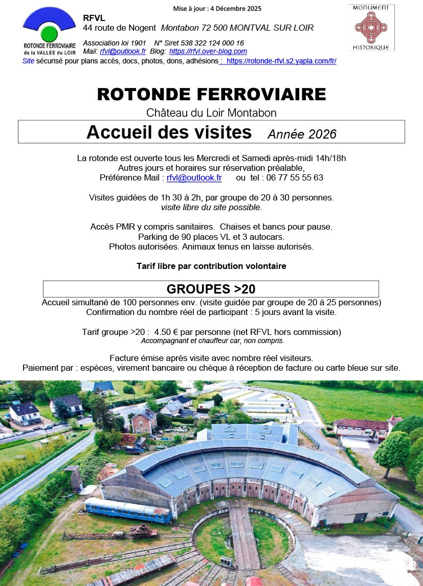 La rotonde se visite toute l'année. Mercredi et Samedi 14h 18h. Visite guidée de 1h30 à 2h